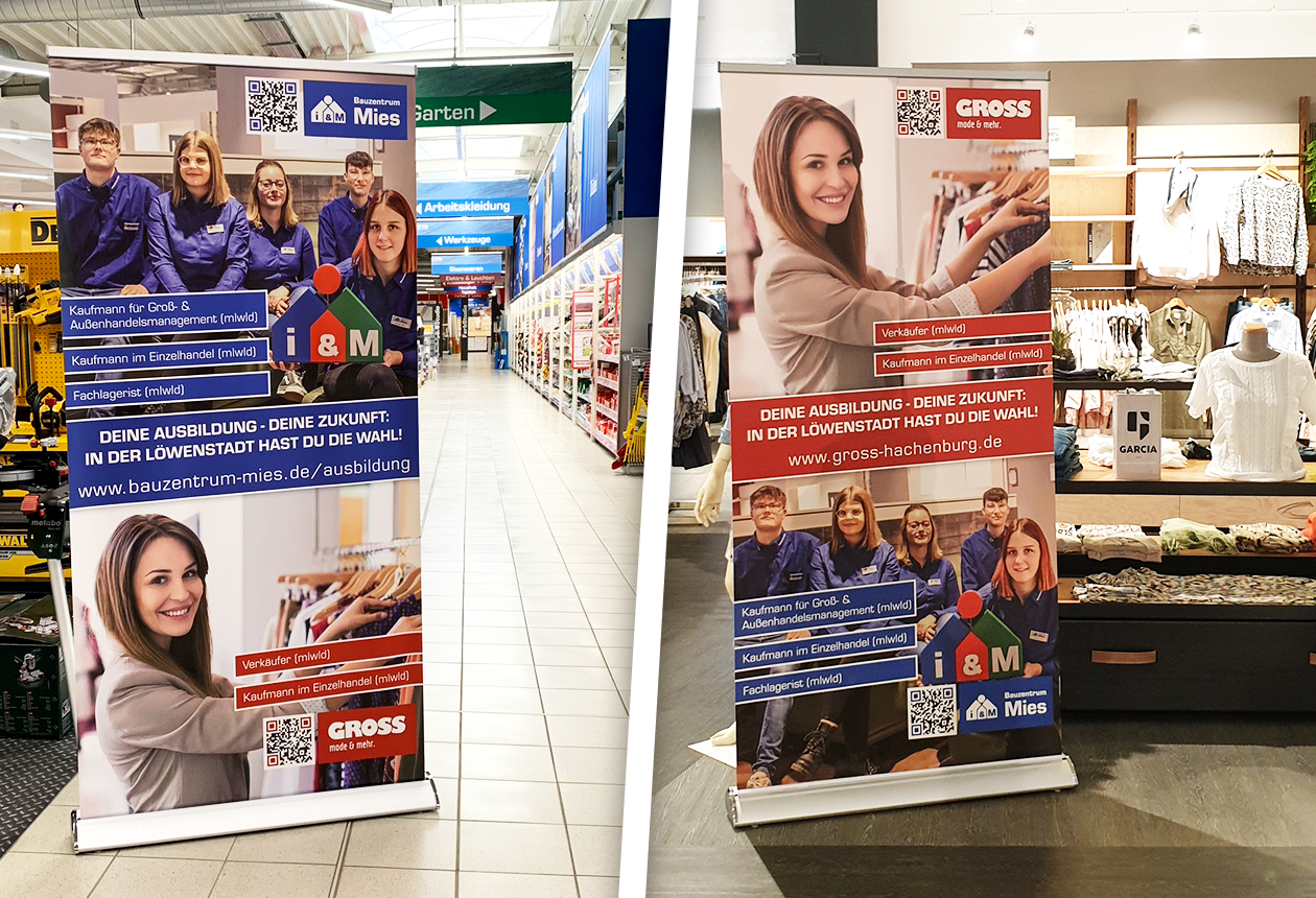 Das Modehaus GROSS und das Bauzentrum Mies suchen Nachwuchskräfte von Morgen: in deiner Ausbildung erwarten dich spannende und abwechslungsreiche Aufgaben, eine faire Bezahlung, nette Arbeitskolleg*innen, attraktive Mitarbeiterrabatte sowie gute Übernahmechancen nach bestehen der Abschlussprüfung!